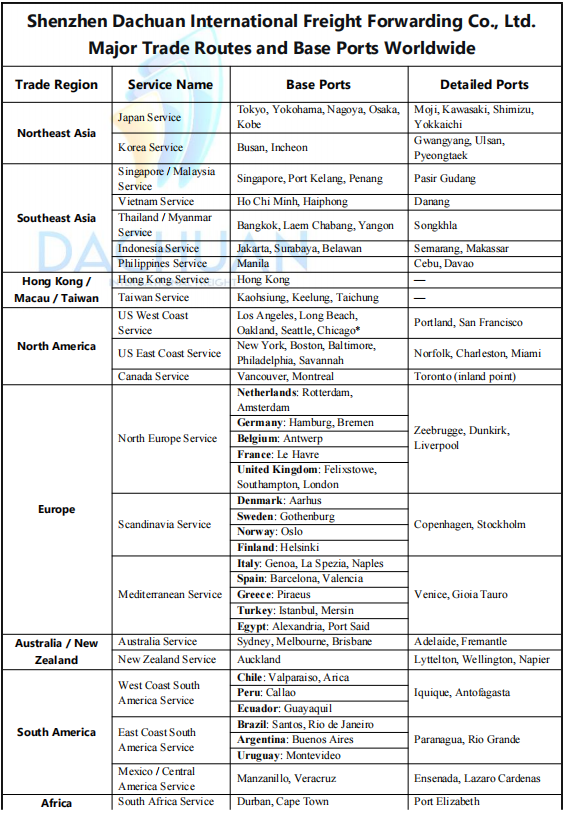 Dachuan International — Route Network Overview